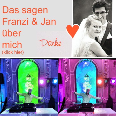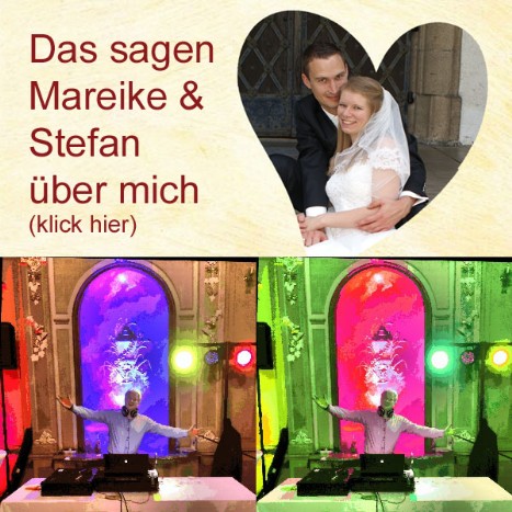 Ich verfüge über absolut professionelles Equipment. Dazu gehört eine hervorragend klingende Soundanlage, ein vollständiges Backup-System und eine skalierbare Lichtanlage mit verschiedenen Effekten. Außerdem verfüge ich über eine riesige Musikauswahl von anno Schellack bis heute, viel Erfahrung und beste Referenzen. Ausführliche Vorbesprechung und Berücksichtigung Ihrer individuellen Wünsche und Vorgaben sind bei mir selbstverständlich.